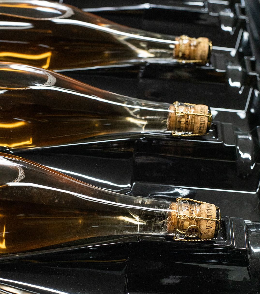 Produced with grapes of the Lambrusco Grasparossa, Pignoletto, Trebbiano, and Malbo Gentile varieties, coming exclusively from our vineyards, raised with spurred cordon, and cultivated with an organic method.