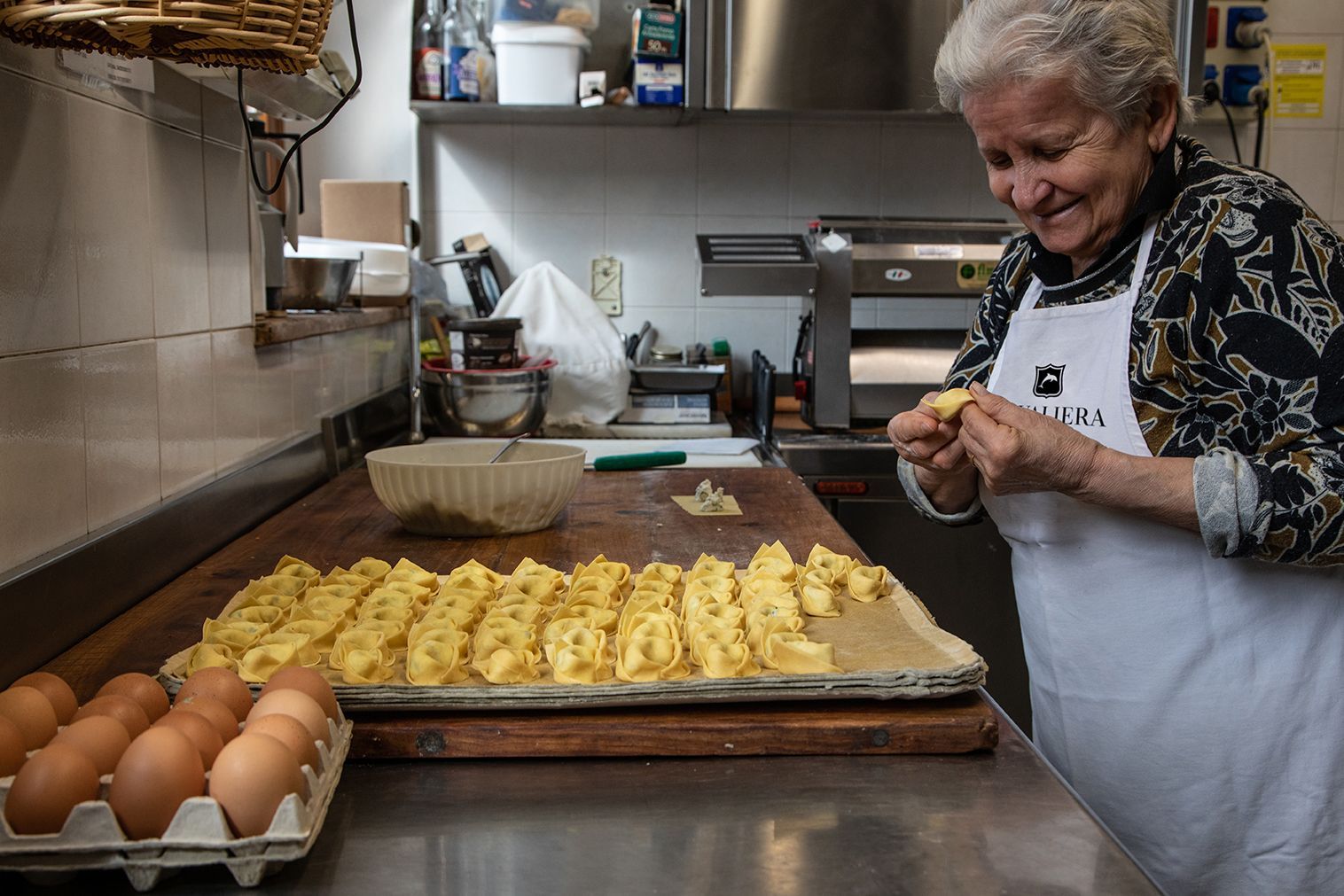 Imagine a farmhouse surrounded by nature, a covered porch and some grandmothers and mothers who come together to prepare a classic dish: the turtléin, stuffed egg pasta, typical of our history.